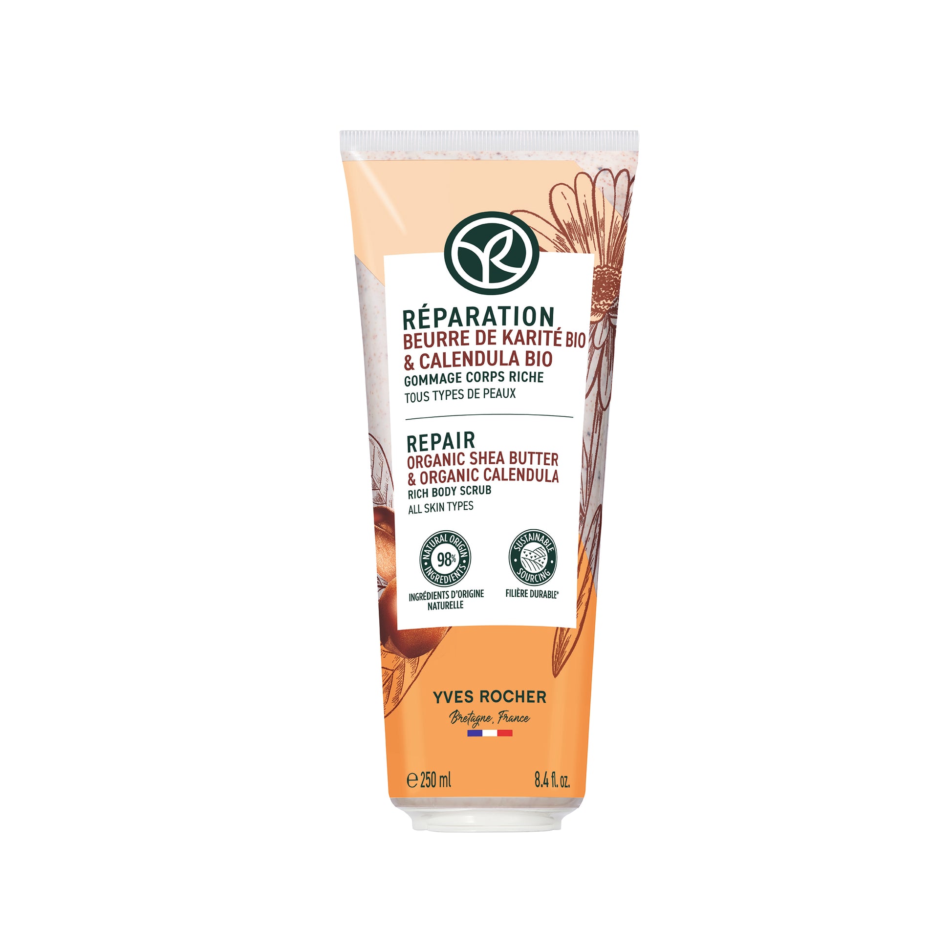 Rikkalik kehakoorija, mis on rikastatud BIO sheavõi ja purustatud sheapähkli koorega, koorib nahka õrnalt.