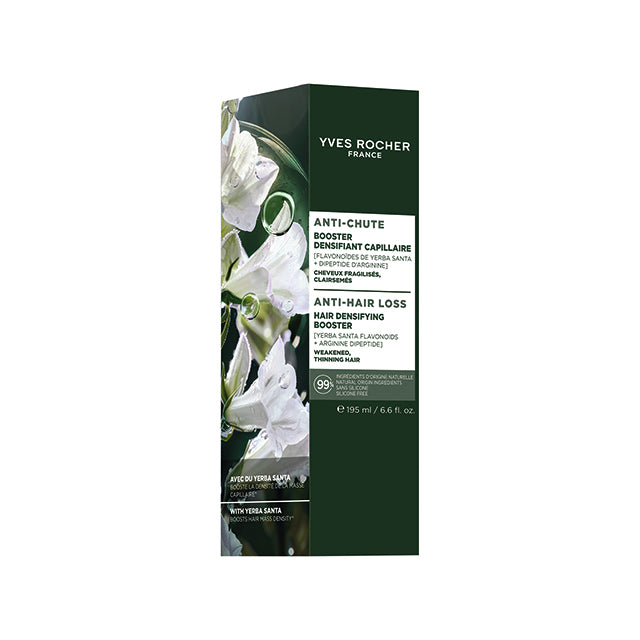 Sprei-Booster koostises juuste tiheduse ja väljalangemise vastu - Yerba Santa flavonoidid koos arginiini dipeptiididega, mis on vetikatest saadud peptiidide duo, aeglustavad juuste väljalangemist (1).