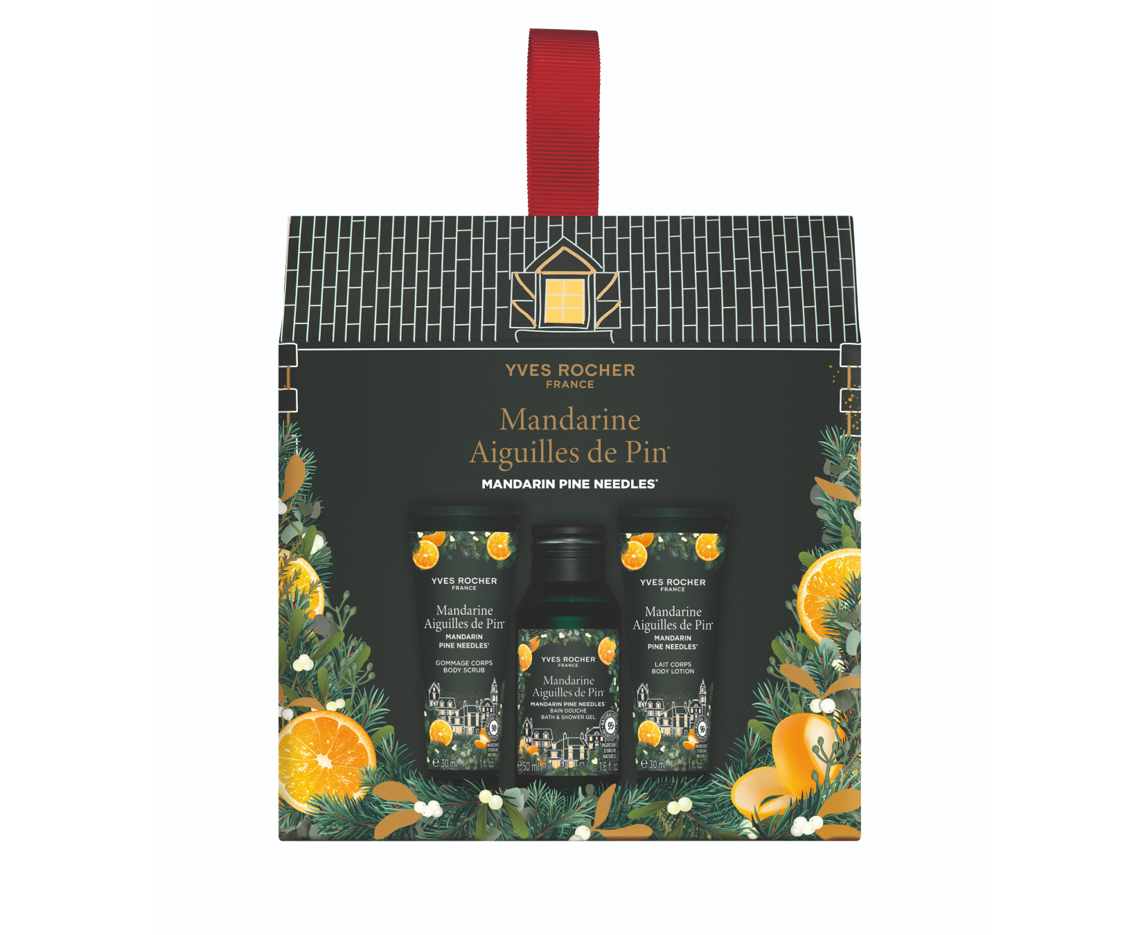 La Gacilly südames, Yves Rocher’ sünnipaigas, avaneb kollektsioon sädeleva ja puuviljase mandariini* aroomiga, mida täiendavad männi* puidused noodid – igapäevane hoolduskomplekt.